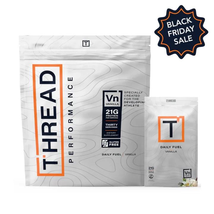 Daily Fuel by Thread Performance is a holistic, whole-foods supplement designed to support the muscular and skeletal development of growing athletes. Built specifically for teenage performance and recovery, it delivers complete nutrition from real food sources to fuel muscle repair, bone strength, and long-term athletic growth. With balanced macronutrients, key vitamins, and minerals that work together to optimize development, Daily Fuel helps teen athletes build a stronger foundation to train harder everyday.