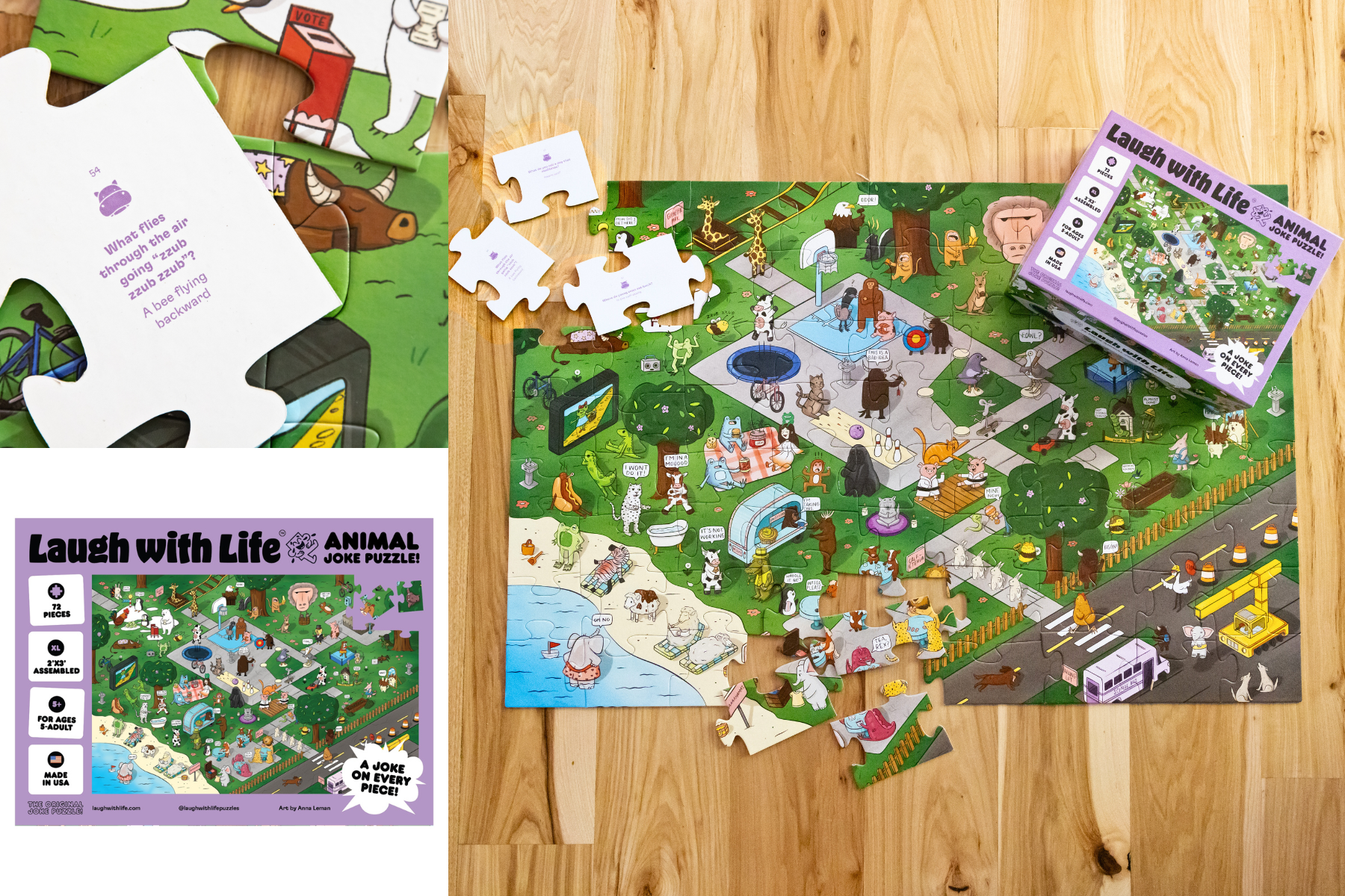 More than just a puzzle! The 72-Piece Animal Joke Puzzle from Laugh with Life is a 3-in-1 adventure with kid-friendly animal jokes on each piece, a vibrant floor puzzle to build, and a seek-and-find hunt that brings every joke to life — all made with care in the USA.
