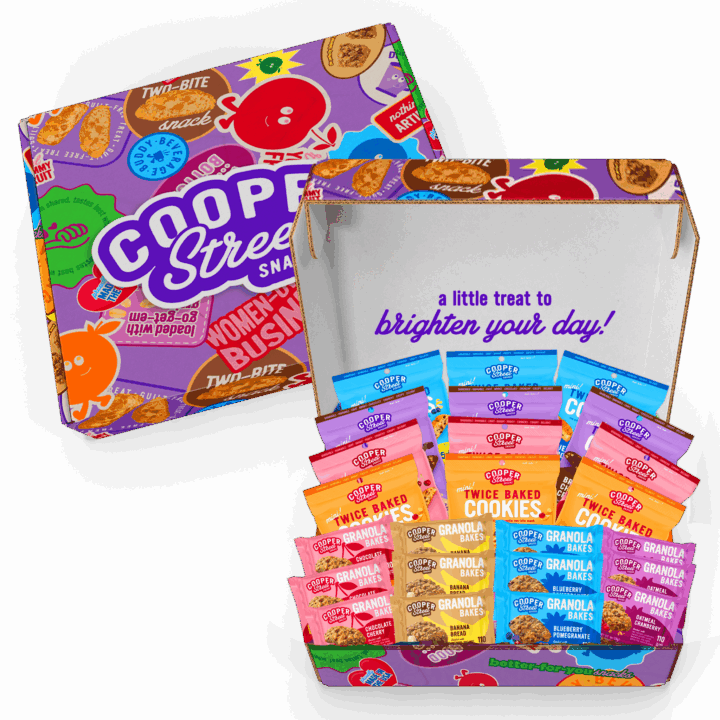 Whether you’re gifting family, friends, or even yourself, our gift box is the perfect way to spread holiday cheer. Share the joy of Cooper Street’s collection with a variety of Twice Baked Cookies and Granola Bakes. Each bite brings a pop of flavor, a smile, and maybe even a new favorite. These low-calorie snacks are peanut free, dairy free, soy free, and low sodium, making them an easy choice for even those with dietary restrictions. Each box ships free, wrapped up in colorful packaging turning every delivery into a happy surprise.