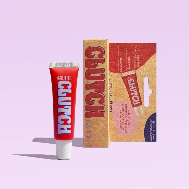 Never struggle with non-sticking, tan-removing, skin-irritating fashion tape again. CLUTCH Glue is a hypoallergenic, sweat resistant liquid fashion tape that holds clothes in place then comes out in the wash. A tube of CLUTCH Glue will last 15-20 uses, while CLUTCH XL will last 30-40 uses.