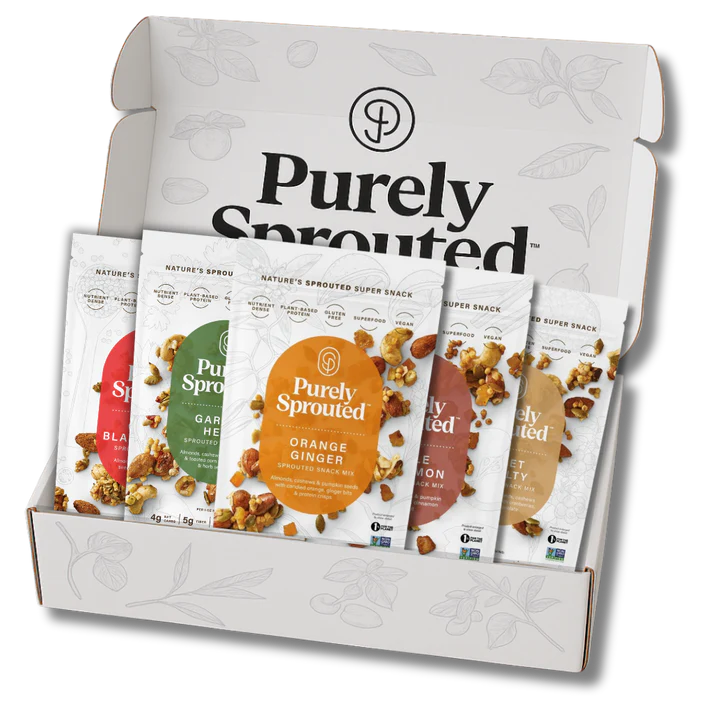 Crafted with sprouted nuts and seeds, every mix is non-GMO and packed with plant-based protein, fiber, and real flavor. Whether you’re treating yourself or surprising someone special, this box is the perfect way to enjoy our full lineup of Purely Sprouted goodness.