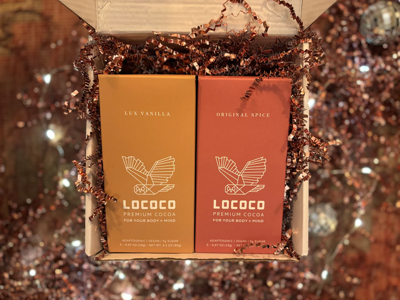 LOCOCO® adaptogenic cocoa is an original blend of organic cacao powders, low-glycemic sugars, coconut milk, spices, and functional mushrooms to support your body and mind. It’s dairy free, gluten-free, contains less than a third of the sugar found in other cocoas, less than 10% of the caffeine found in coffee—and with a flavor that bests other hot chocolates in culinary taste tests. Not just for the holidays, you can enjoy as a scoop in your morning coffee, a midday pick-me-up, or a nourishing nightcap.