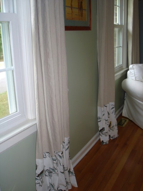I saw these featured on someone's site recently and thought, "I'm so doing this." I have drop cloth curtains in my dining room but they are too short. I love the Tar-jay tablecloth you used.
